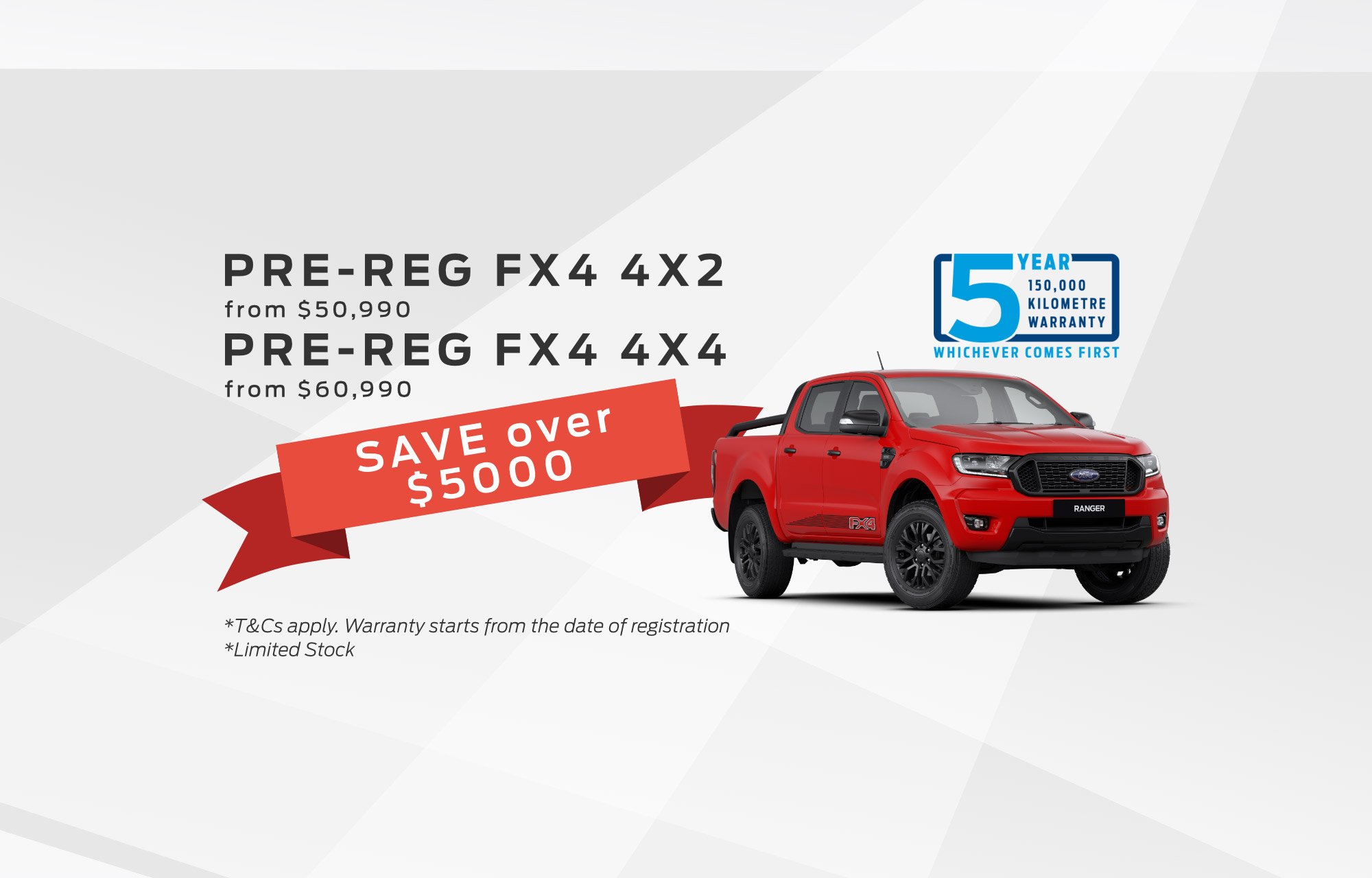 Pre-Reg Fx4 4x2 from $50,990 & Pre-Reg Fx4 4x4 from $60,990. SAVE over $5000.